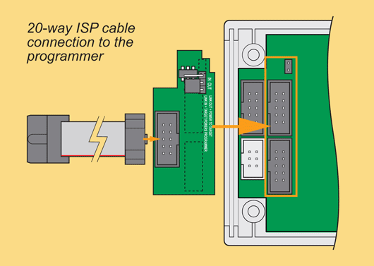 This allows the programmer to interface directly to most target systems without requiring an external cable convertor.