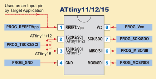 During ‘High Voltage Serial Programming’ of the Atmel ATtiny11/12/15 microcontrollers, a +12V Vpp voltage is generated by the programmer on this pin |